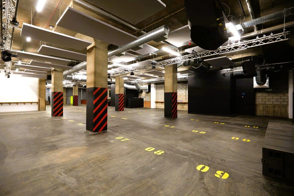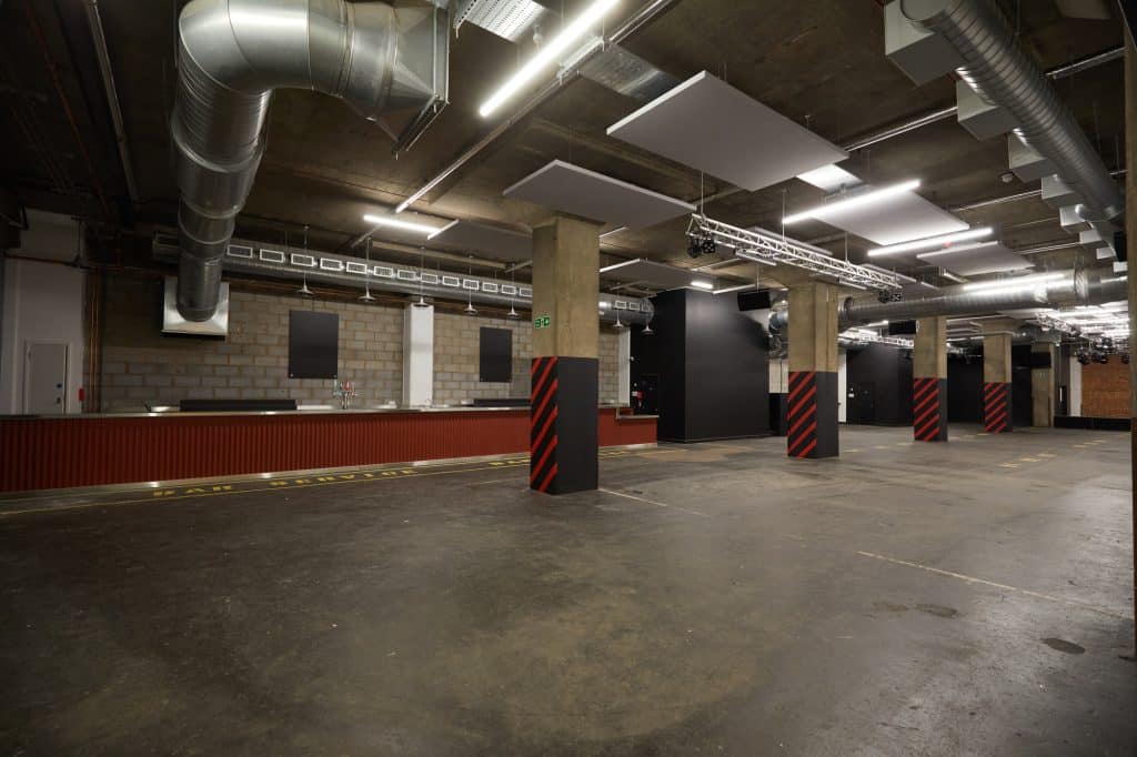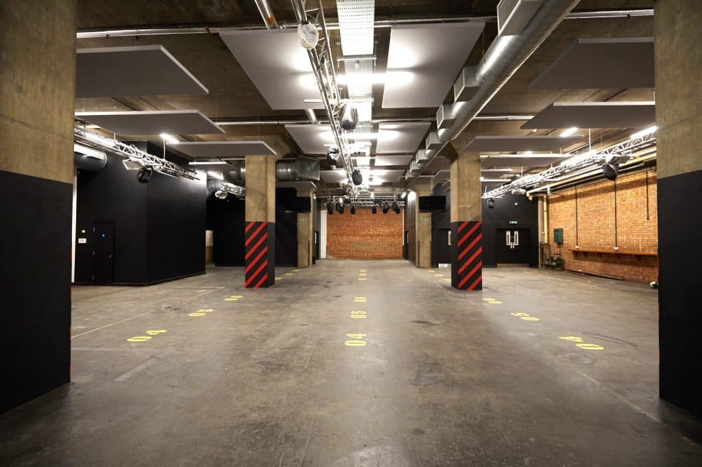 Industrial Warehouse Tottenham. 8,500sq ft ground floor warehouse space, complete with installed trusswork, lighting & sound infrastructure based within a transformed 1960’s industrial warehouse. It has a raw concrete aesthetic with industrial columns. Good loading bay facilities.